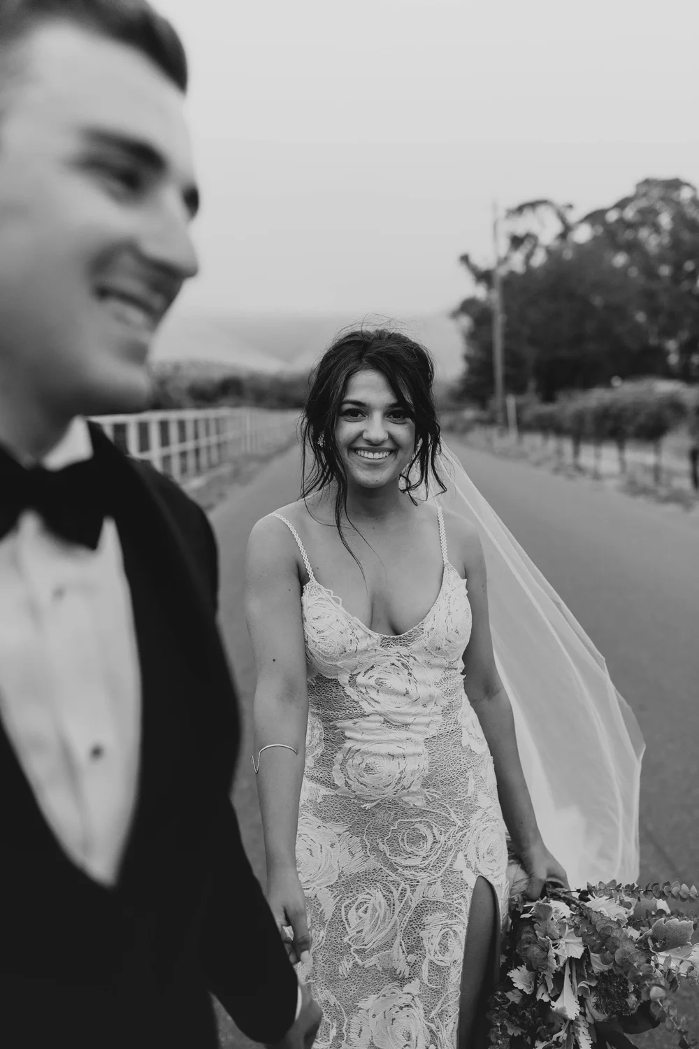 The Rebecca veil is a two tier, circle cut, raw edge veil. Perfect for that little extra touch on your wedding day. Loren is wearing Cathedral length in Ivory.