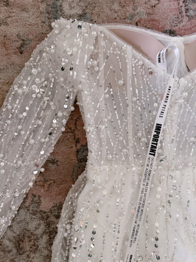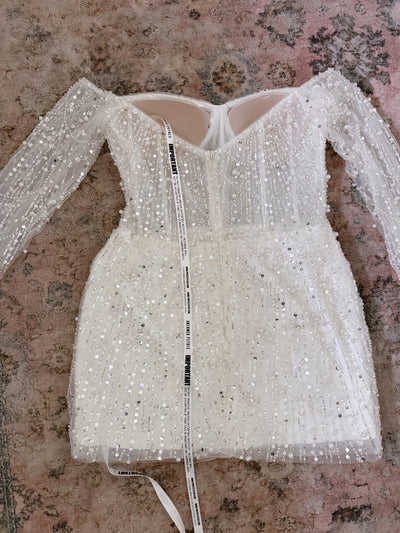 With its sleek silhouette and intricate beading, the Amalfi Mini is perfect for rehearsal dinners, bachelorette nights, or the after party.