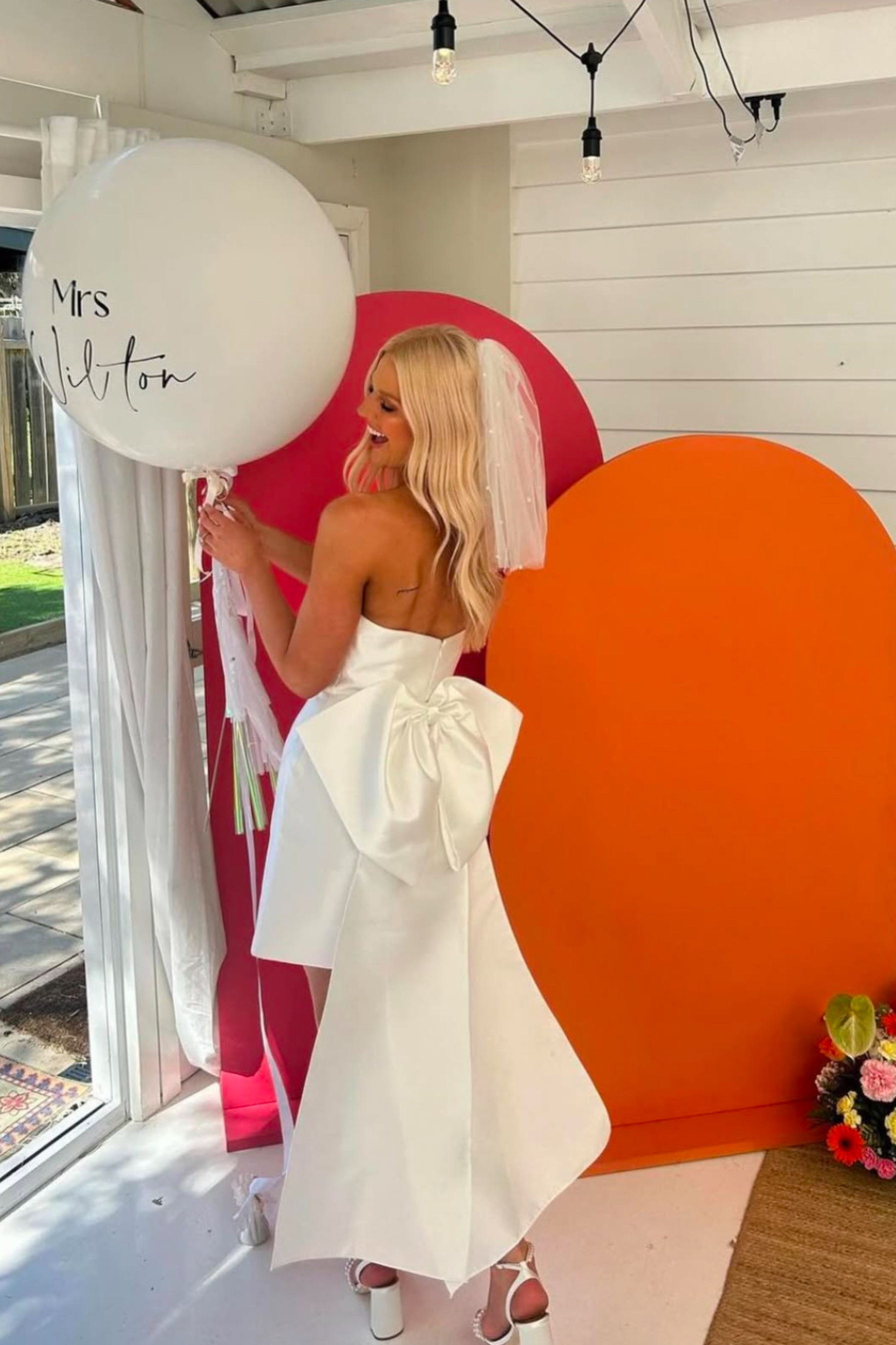 I wore this as a second dress for my wedding reception— it is so cute and fun!! Got so many compliments, it really makes you feel like you’re ready to party while still looking classy. The fit was perfection— I did alter the sleeves so they were removable but that was just preference. Highly recommend!