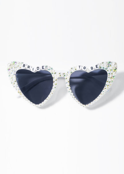 All heart eyes for these hand studded sunnies with crystals, pearls and the cutest "Bride To Be" lettering. Each pair is hand-made and therefore unique. Shipped in the cutest white box (see last photo) with included sunglasses sleeve. Perfect for travel and doubles as the sweetest gift.