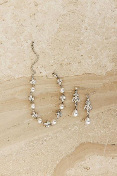 Be the shining star on your special day with our Forever Bridal Jewelry Set. Featuring stunning CZ crystals and elegant shell pearls, this set includes the chic Leo drop earrings and dainty Forever tennis bracelet. It's the perfect pairing for a show stopping bridal look!