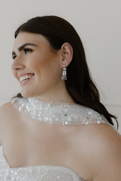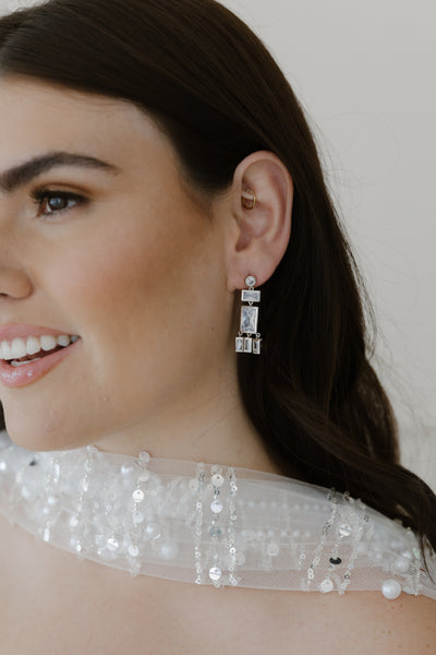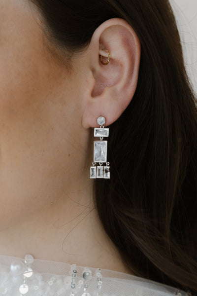 Beautiful crystal crystal statement drop earrings. The perfect finishing touch to your night out. Also pairs with your favorite jeans and white tee to level it up.