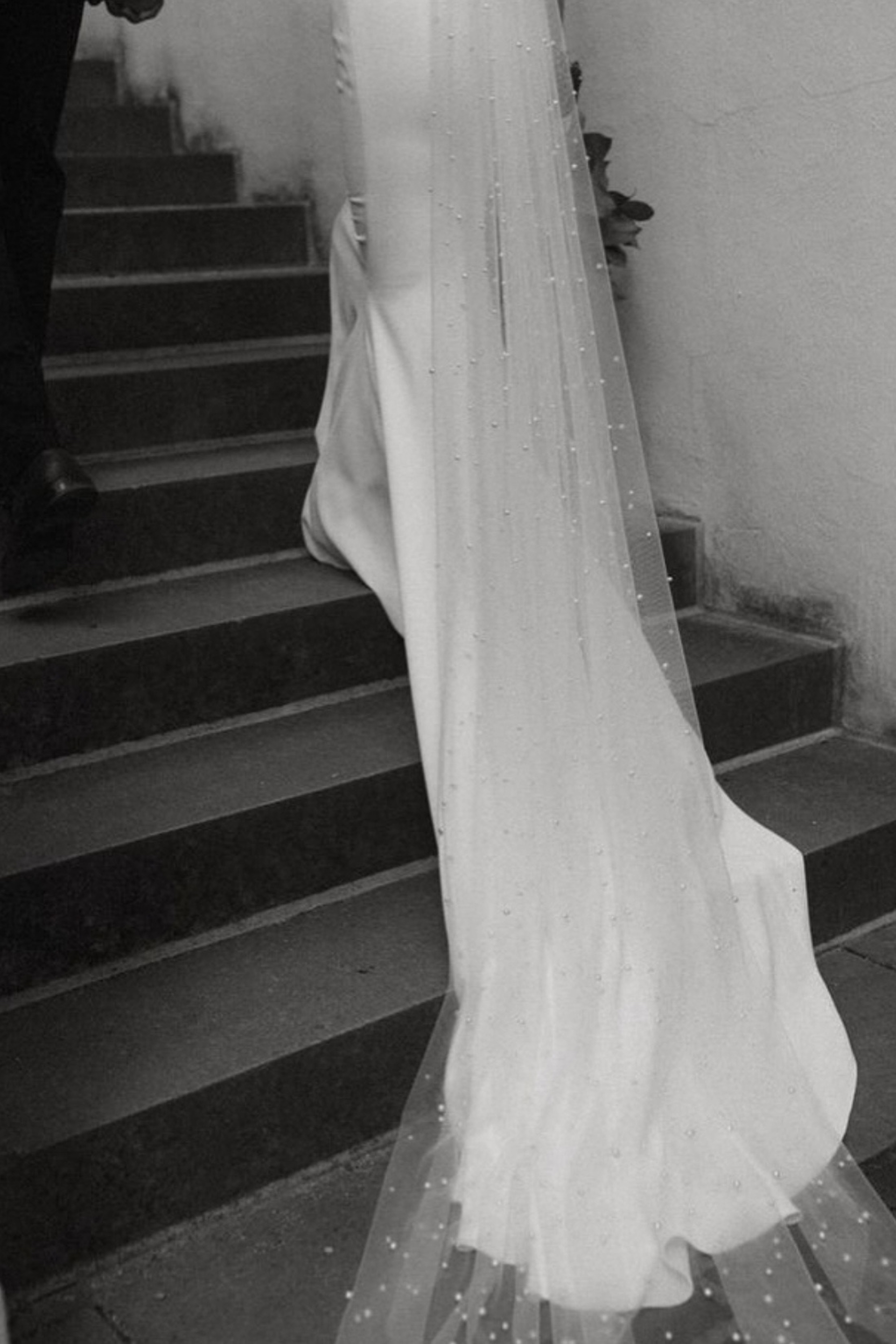 Absolutely wonderful veil. Exactly what I was looking for. Perfect length for my dress, thin but excellent material so it’ll flow in the wind but not rip easily. Pearls are beautiful. Best veil I could have chosen for my big day. Thank you!!!