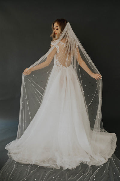 I have been on the hunt for the perfect pearl veil and this is IT! the pearls arent overpowering, but add a unique look to elevate your day. I am soo excited to wear for my May wedding