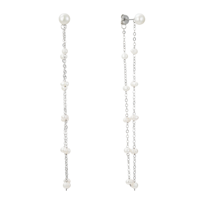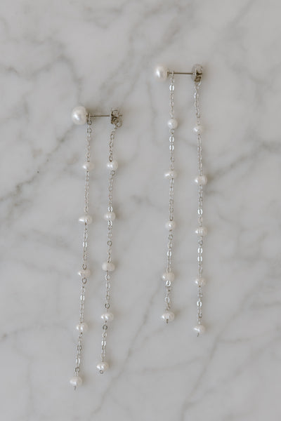 I got married in October of this year and was looking for earrings that would allow me to wear my mom's pearls (who passed away when I was younger) on my wedding day. Her pearls are a simple pearl earring, and paired with the Lara Drop earrings front and back chain, it was a perfect combination to honor her, in an updated and elegant way!