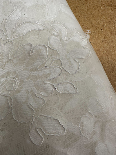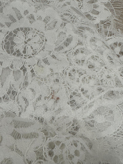 Studio samples with very small imperfections of yellow/black/brown stains on the lace.