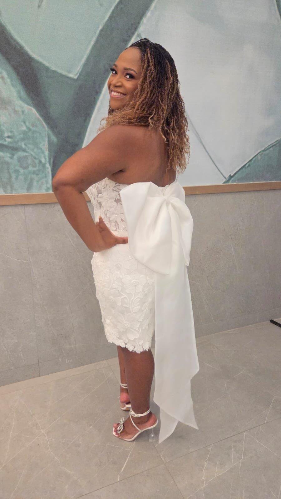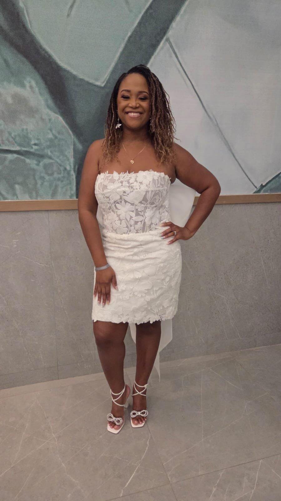 We changed our wedding plans to elope last min. I saw this dress and fell in love! Problem was it was on pre-order until after my wedding date. I reached out to untamed petals team and they were able to get me this dress 10 days early! This dress is BEAUTIFUL! Its perfect! There's no detail left out! I'm 5'2 130lbs curvy size 8 fit like a glove! I'm so appreciative of untamed petals for making this happen! Thank you! 🫶