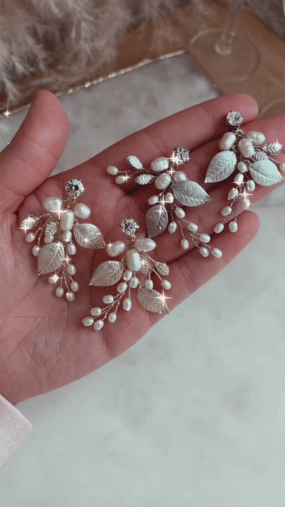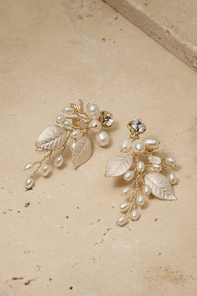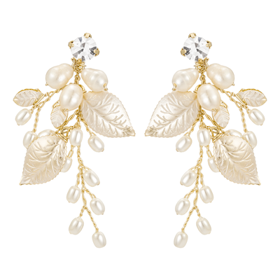 I just received my gold Ryann earrings and they're beautiful! My wedding dress is strapless with a sweetheart neckline, so I wanted statement earrings instead of a necklace. These earrings are unique, and the leaves will coordinate really well with the floral lace on my gown. I also love how the different stones will tie in my diamond tennis bracelet (something borrowed from my mom) and the pearls on my sandals. I spent so long searching for the perfect earrings and can't wait to wear these on my wedding day!