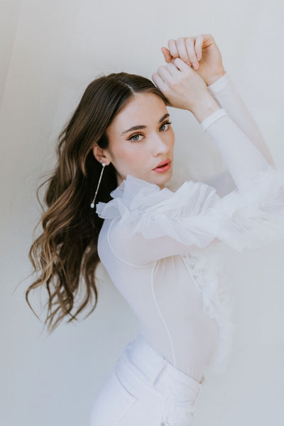 Kelly KI A beautiful earring! Looked wonderful with the wedding dress! MAY have been better if A BIT shorter - 8cm instead of 10cm?