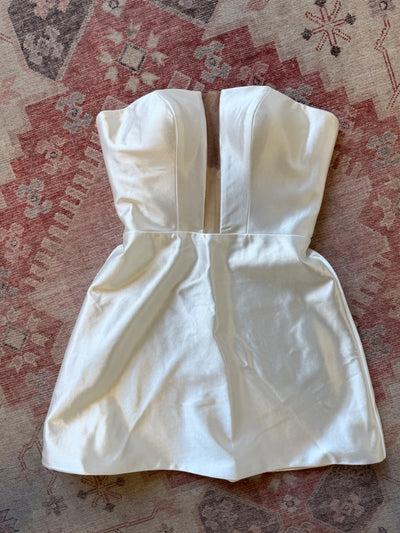 Beautiful silk satin open front mini dress with detachable belt. Studio sample.