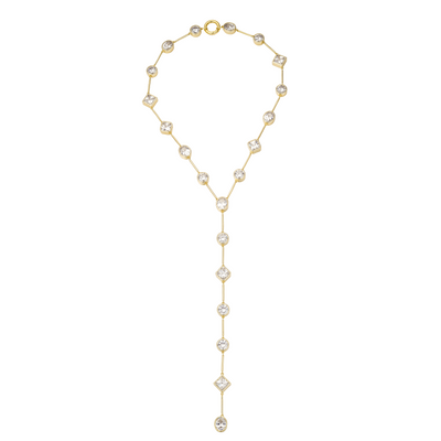 Thank you for taking the time to review the Tuscany Choker. I am sorry to hear you don't love the quality of this piece. It is made with the highest quality materials and CZ crystals so I am sorry to hear it wasn't what you were expecting. Regarding the clasp, that is actually for the back as this is a lariat style necklace. You can choose to wear it backwards though as shown in some images and in that case the clasp would be in front.